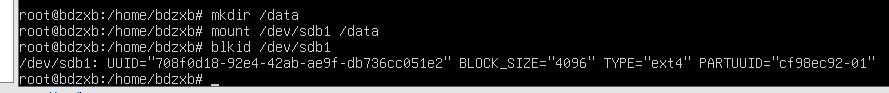 到此就完成硬盘挂载 不放心可以输入reboot 重启一下看看